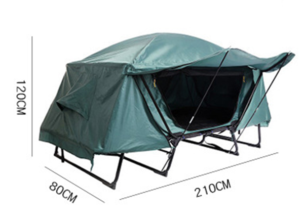 Ndryshe nga tendat klasike, kjo vjen me strukturë të ngritur mbi këmbë metalike, duke e mbajtur trupin larg tokës dhe duke ofruar komoditet shumë më të lartë gjatë gjumit apo pushimit.