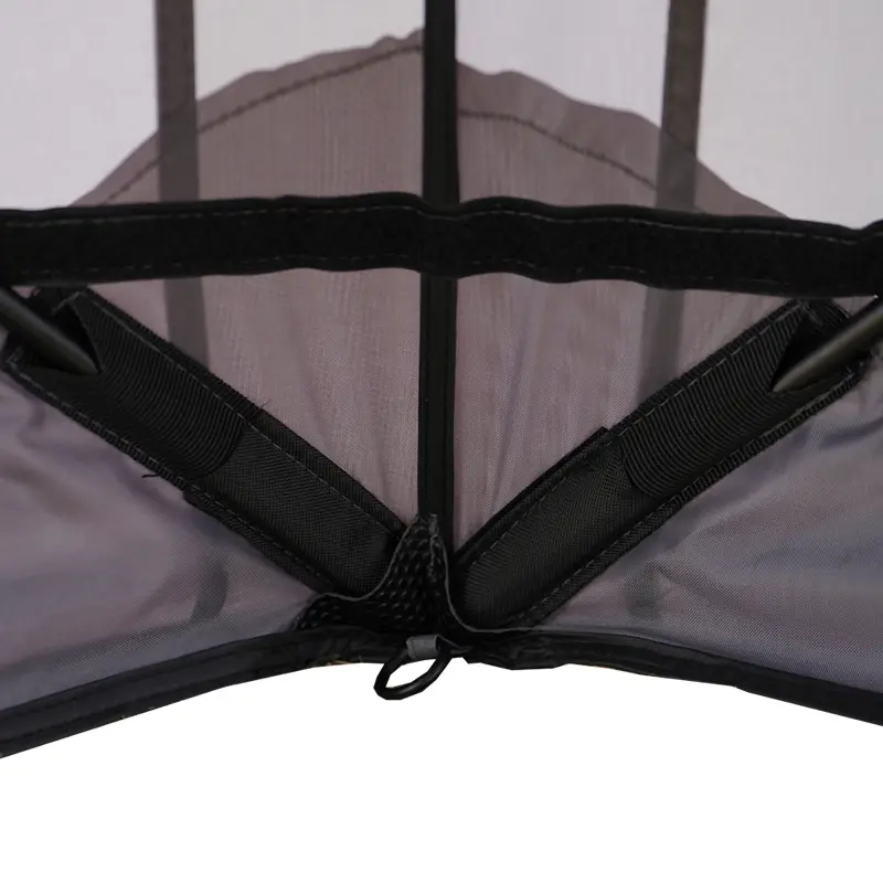Panelet mesh mbrojnë nga insektet gjatë verës, ndërsa panelet e plota të heqshme përdoren në mot të ftohtë ose me shi. Çatia është e trajtuar me UPF50+ për mbrojtje nga dielli dhe PU coating për rezistencë ndaj lagështisë.