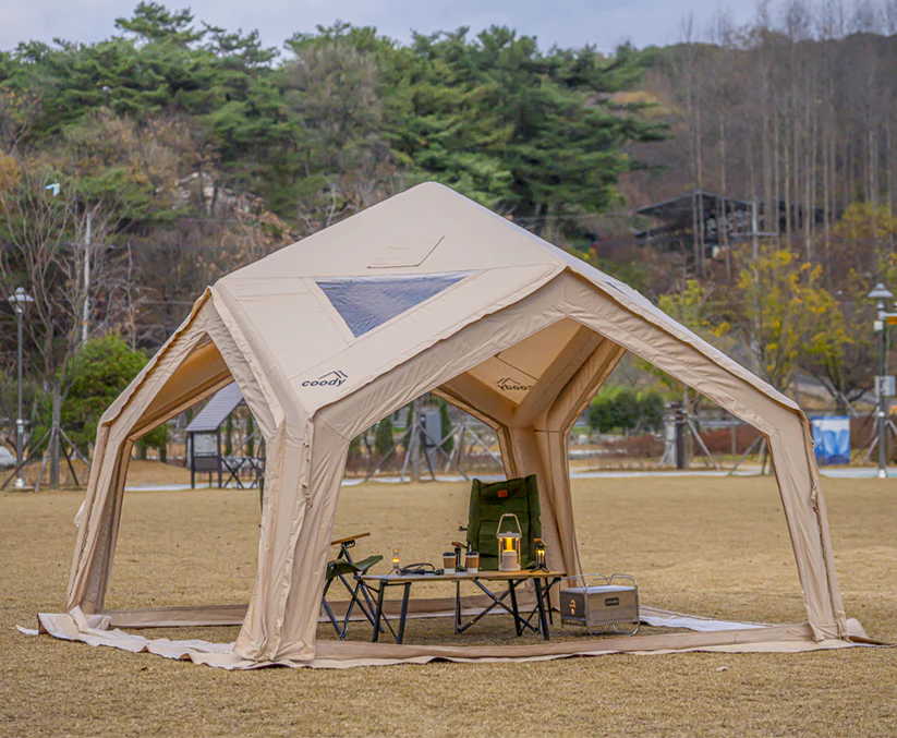 Coody Hub nuk është tendë klasike. Është qendër multifunksionale outdoor: living room kampingu, kuzhinë, ambient social ose modul lidhës për tenda të tjera Coody.