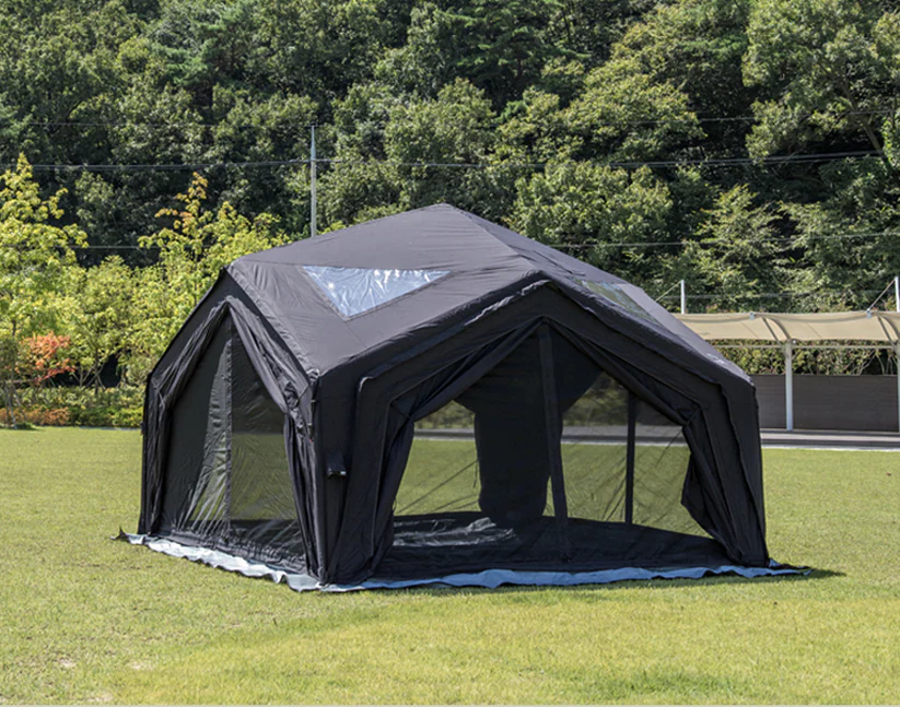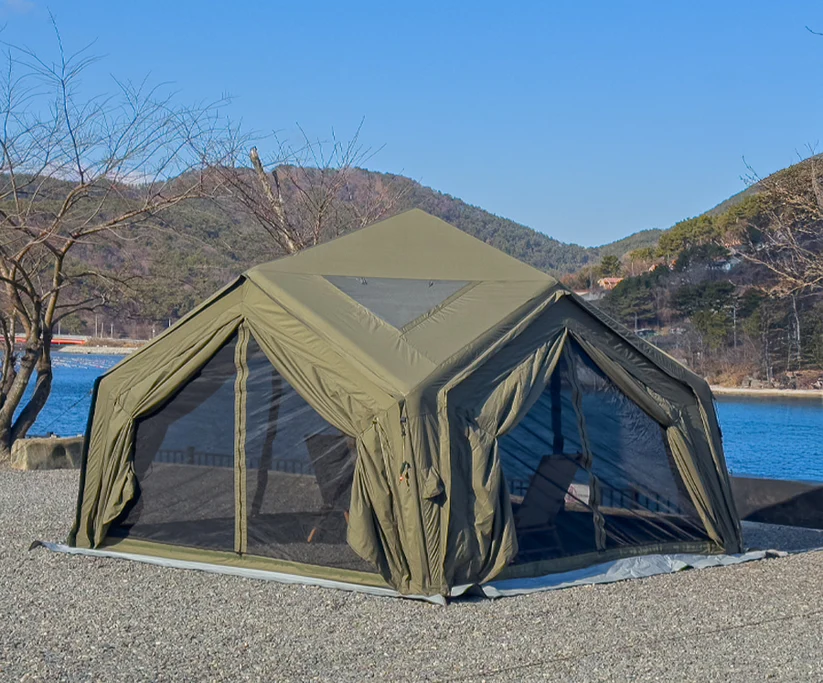 Struktura inflatable e bën montimin ekstremisht të shpejtë dhe shumë stabile ndaj erës. Zero shufra metalike. Fryhet, fiksohet dhe është gati.