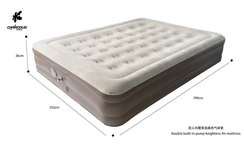 Materiali PVC i trashë është rezistent ndaj konsumimit, ndërsa sipërfaqja flocking është e butë dhe nuk rrëshqet. Pompa e brendshme mundëson fryrje dhe shfryrje të shpejtë pa pajisje shtesë — fut në prizë dhe është gati.