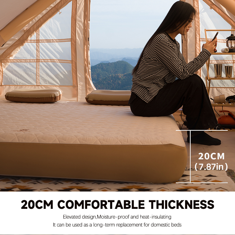 CHANODUG CD-4125 është një dyshek kampingu premium, i projektuar për ata që nuk pranojnë kompromis mes natyrës dhe rehatisë. Me strukturë elastike të brendshme (“elastic wire bed technology”) dhe trashësi 20 cm, ky dyshek ofron mbështetje të fortë dhe komoditet real – shumë më afër një dysheku shtëpie sesa një dysheku klasik kampingu.