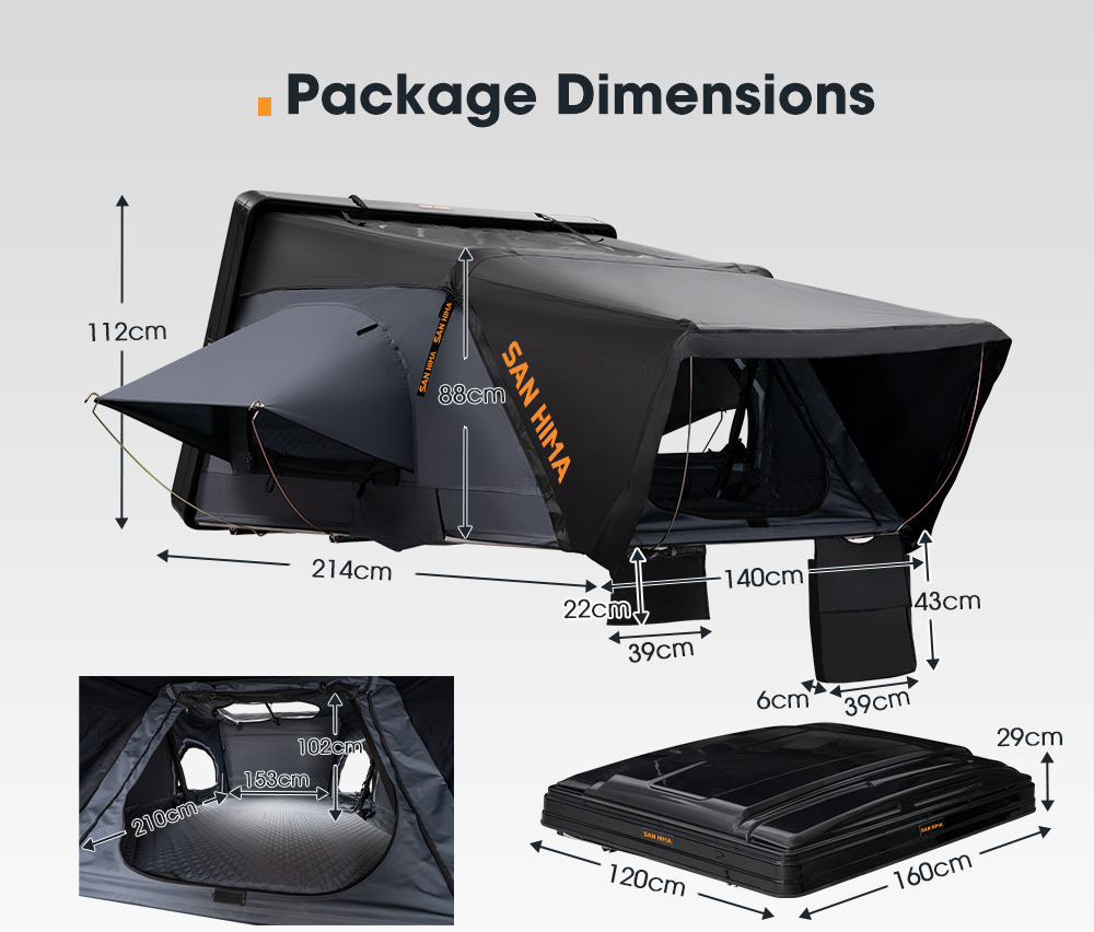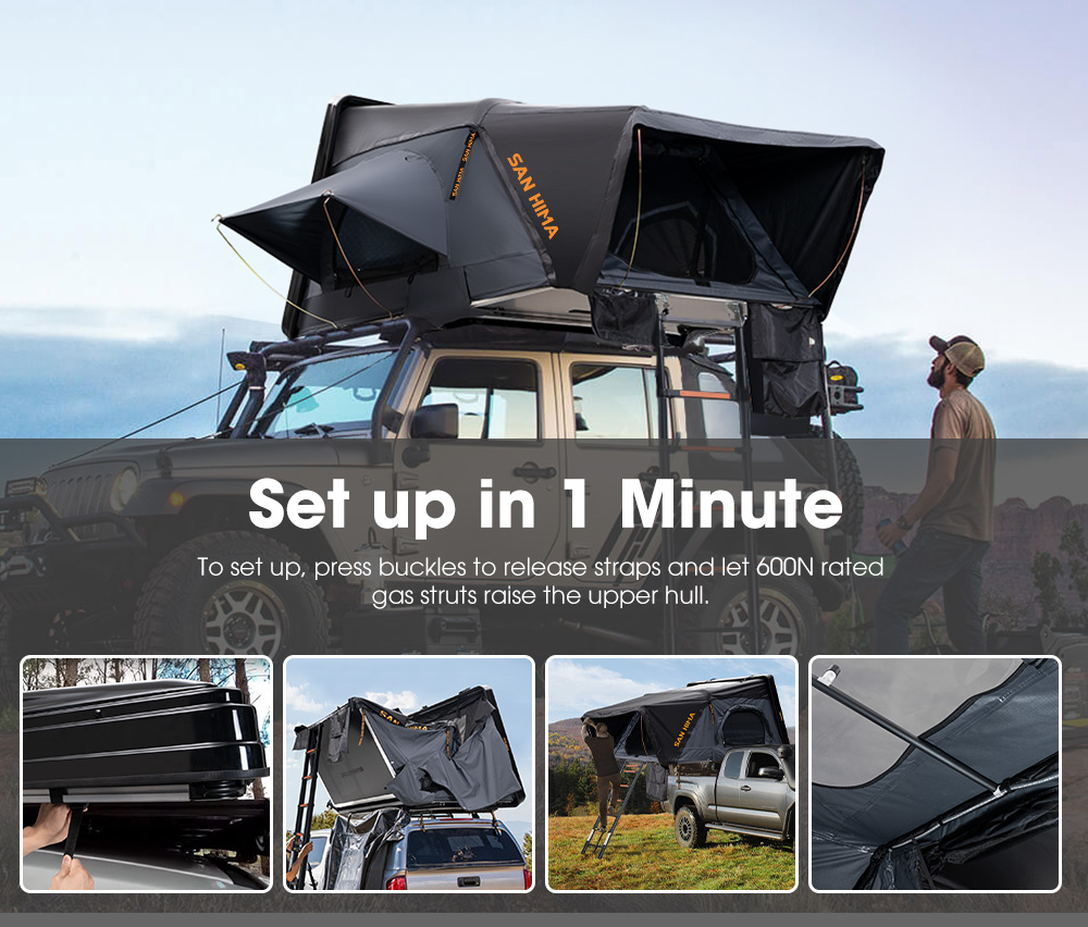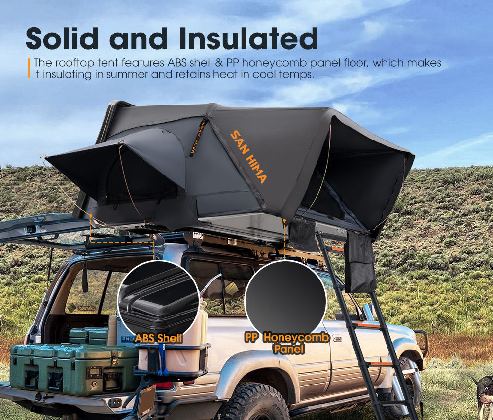 SAN HIMA Rooftop Tent – Model QD-004 është një çadër kampingu premium për tavan makine e projektuar për aventurat overland dhe off-road. Ky model përdor një hard shell ABS aerodinamik dhe sistem hapjeje me gas struts, duke e bërë instalimin shumë të shpejtë dhe praktik.