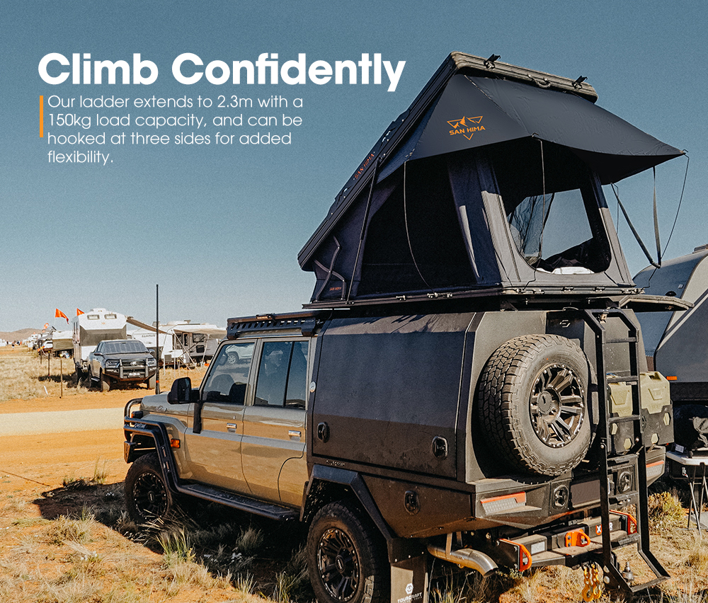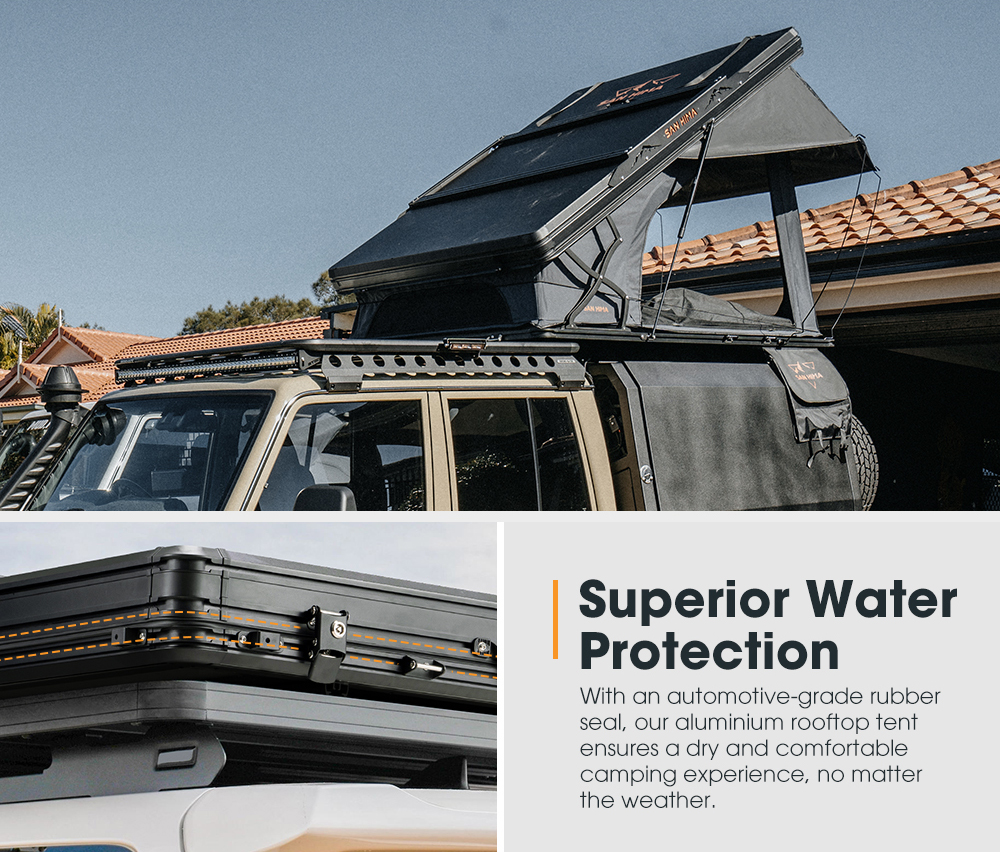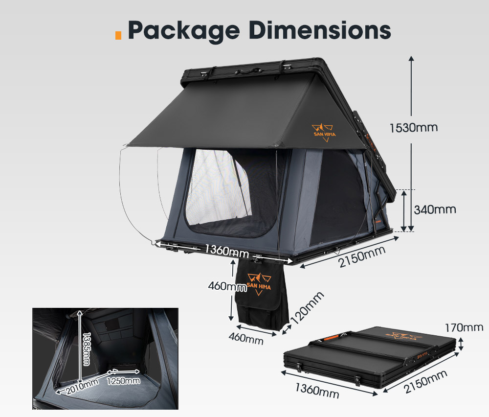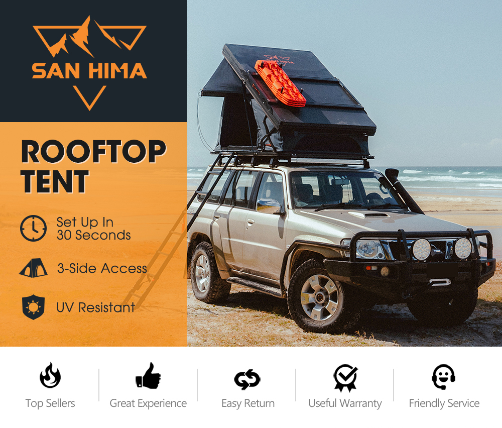 SAN HIMA RTT-UP Hard Shell Rooftop Tent është një çadër kampingu premium për tavan makine, e projektuar për aventura off-road, overlanding dhe udhëtime të gjata me 4×4. Ky model përdor një konstruksion X-Frame pop-up, që krijon më shumë hapësirë brenda dhe e bën hapjen shumë të shpejtë.