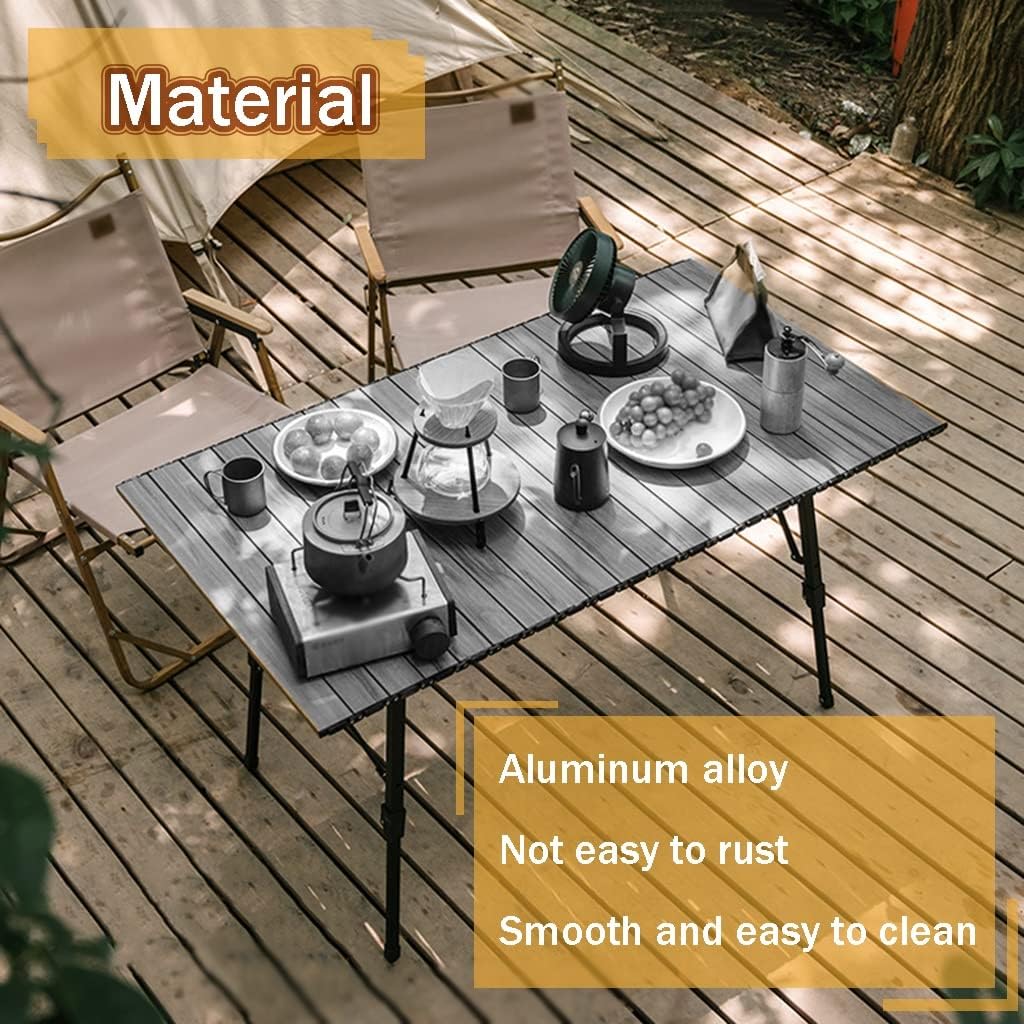 Model profesional për kamping serioz. Tavolinë alumini me lartësi të rregullueshme, strukturë të fortë dhe stabilitet të lartë. E përshtatshme për gatim, ngrënie ose si tavolinë pune outdoor.