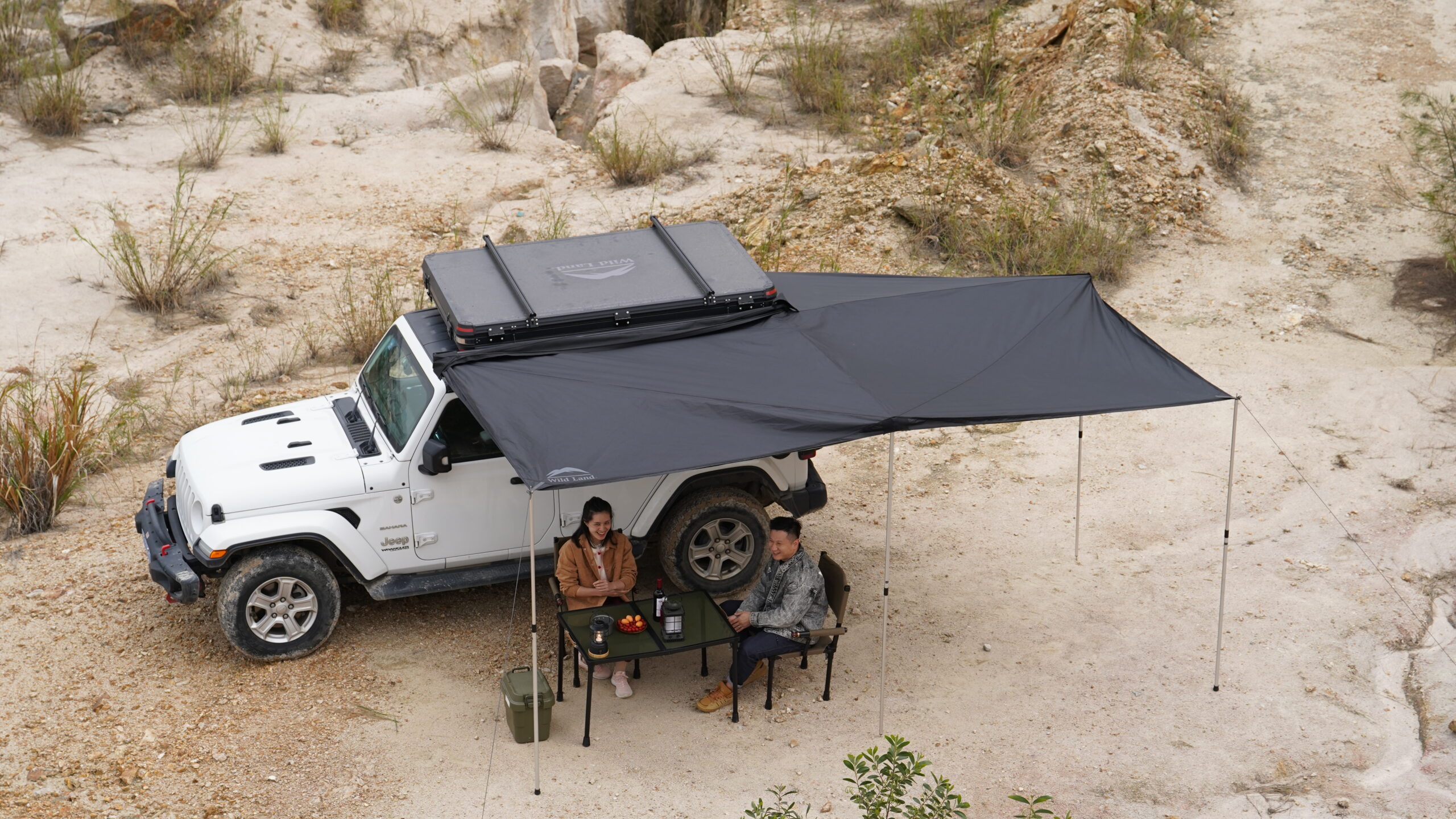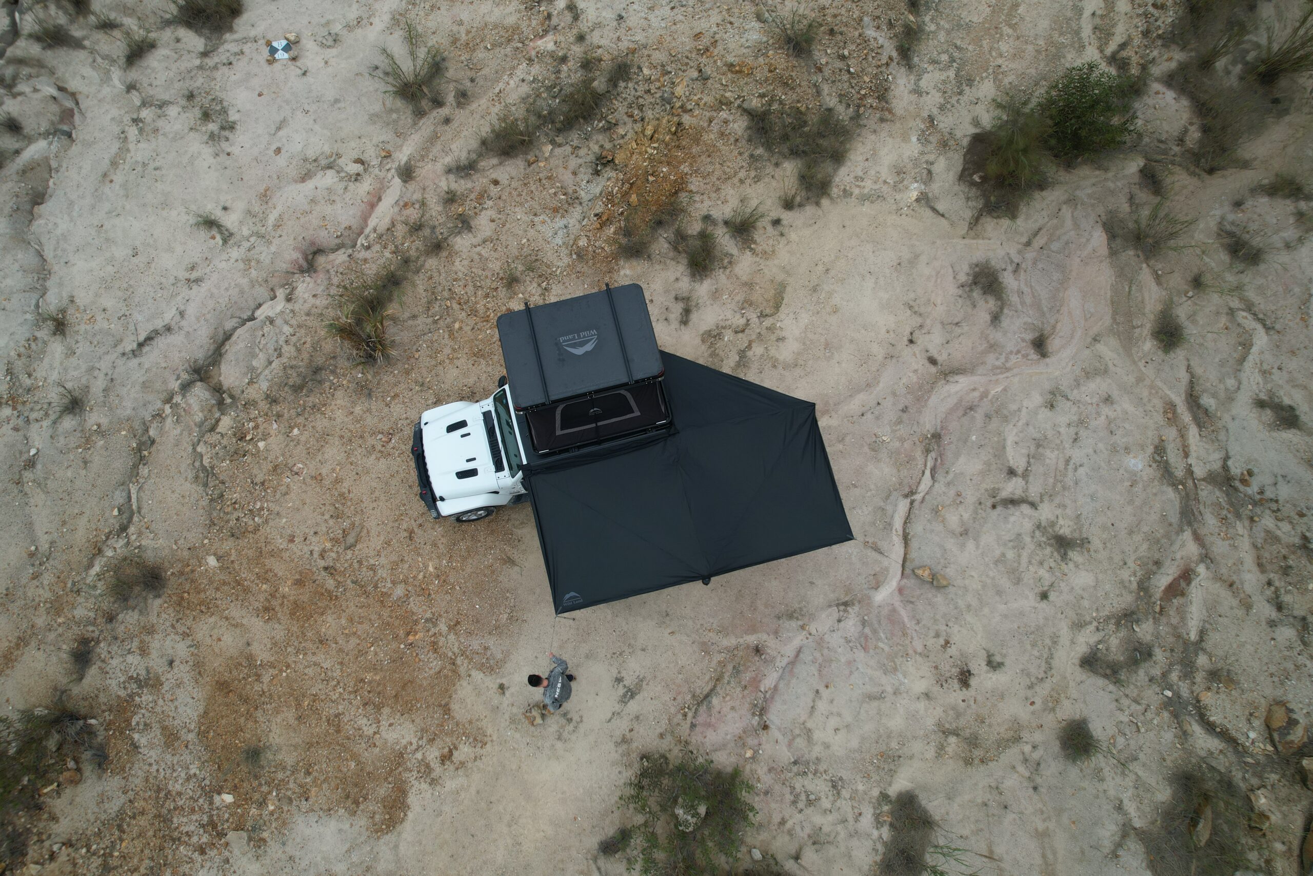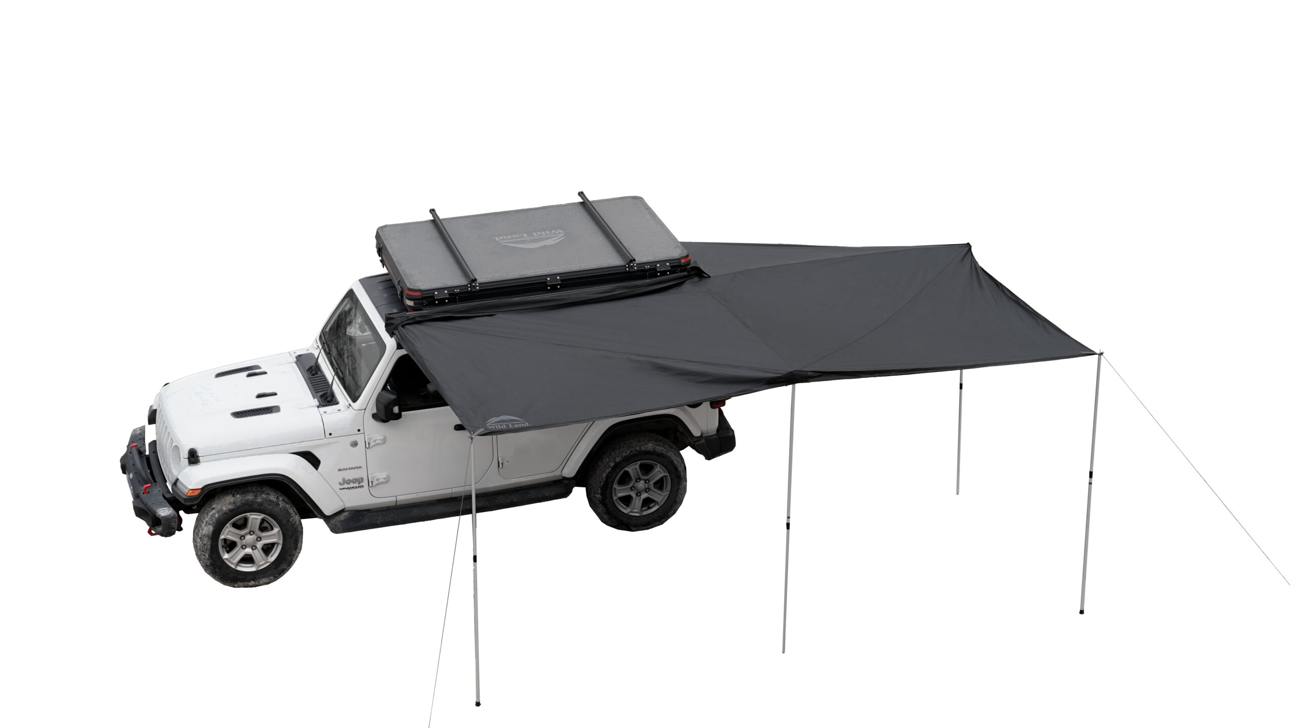Wild Land 270 Degree Awning është një çatie (awning) të madhe me hapje 270° e projektuar për automjetet SUV, 4×4, kampe dhe furgona, që siguron hije dhe mbrojtje nga moti në anën e pasme dhe anën laterale të mjetit gjatë pushimeve apo aktiviteteve në natyrë. Është një zgjidhje ideale për aventurat e gjata, kamping, piknikë dhe zona pushimi, duke krijuar një hapësirë të madhe mbuluese për strehim të përbashkët.