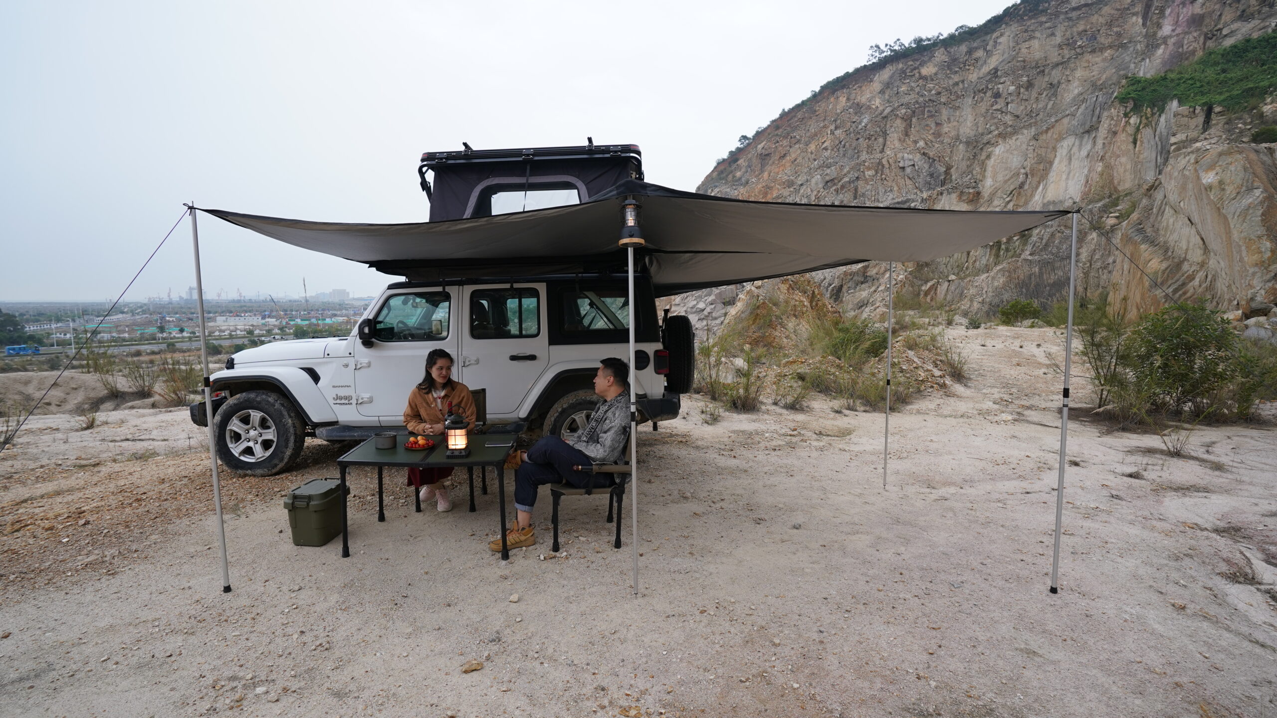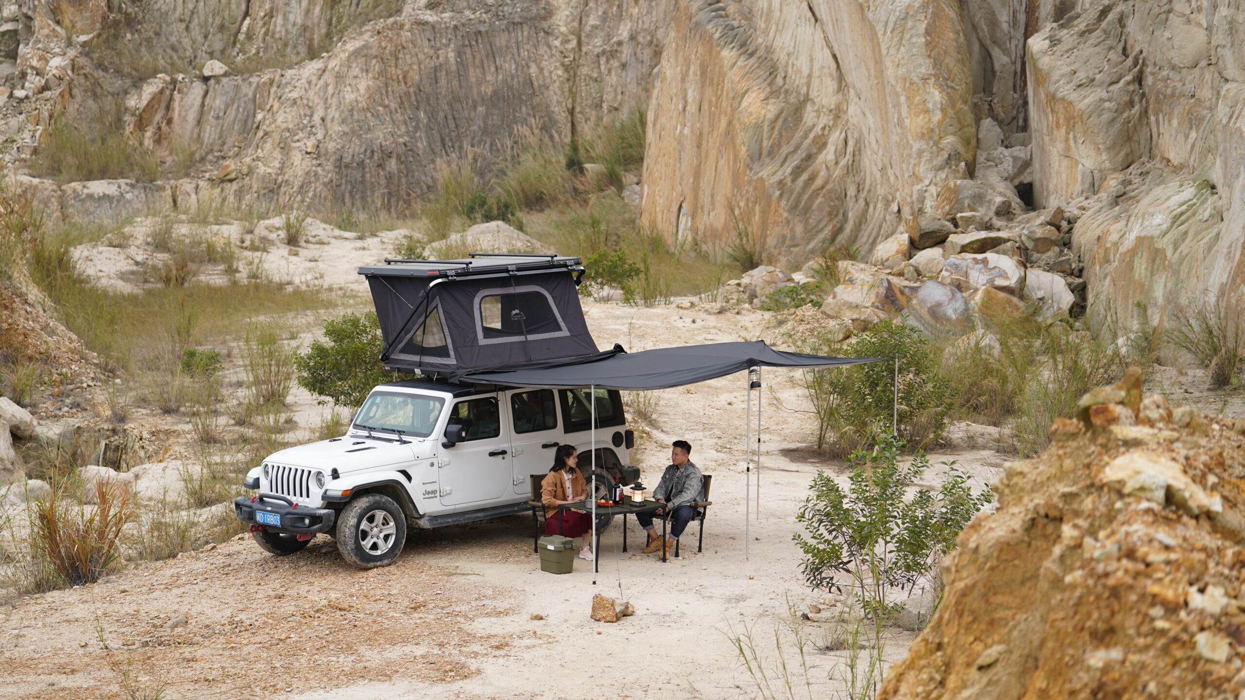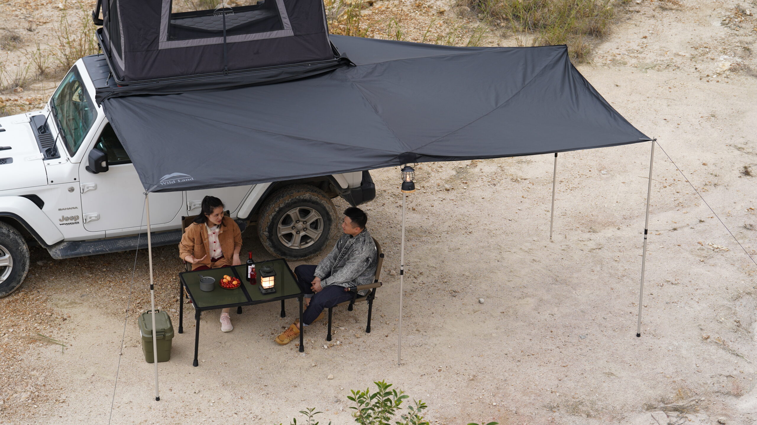 Wild Land 270 Degree Awning është një çatie (awning) të madhe me hapje 270° e projektuar për automjetet SUV, 4×4, kampe dhe furgona, që siguron hije dhe mbrojtje nga moti në anën e pasme dhe anën laterale të mjetit gjatë pushimeve apo aktiviteteve në natyrë. Është një zgjidhje ideale për aventurat e gjata, kamping, piknikë dhe zona pushimi, duke krijuar një hapësirë të madhe mbuluese për strehim të përbashkët.