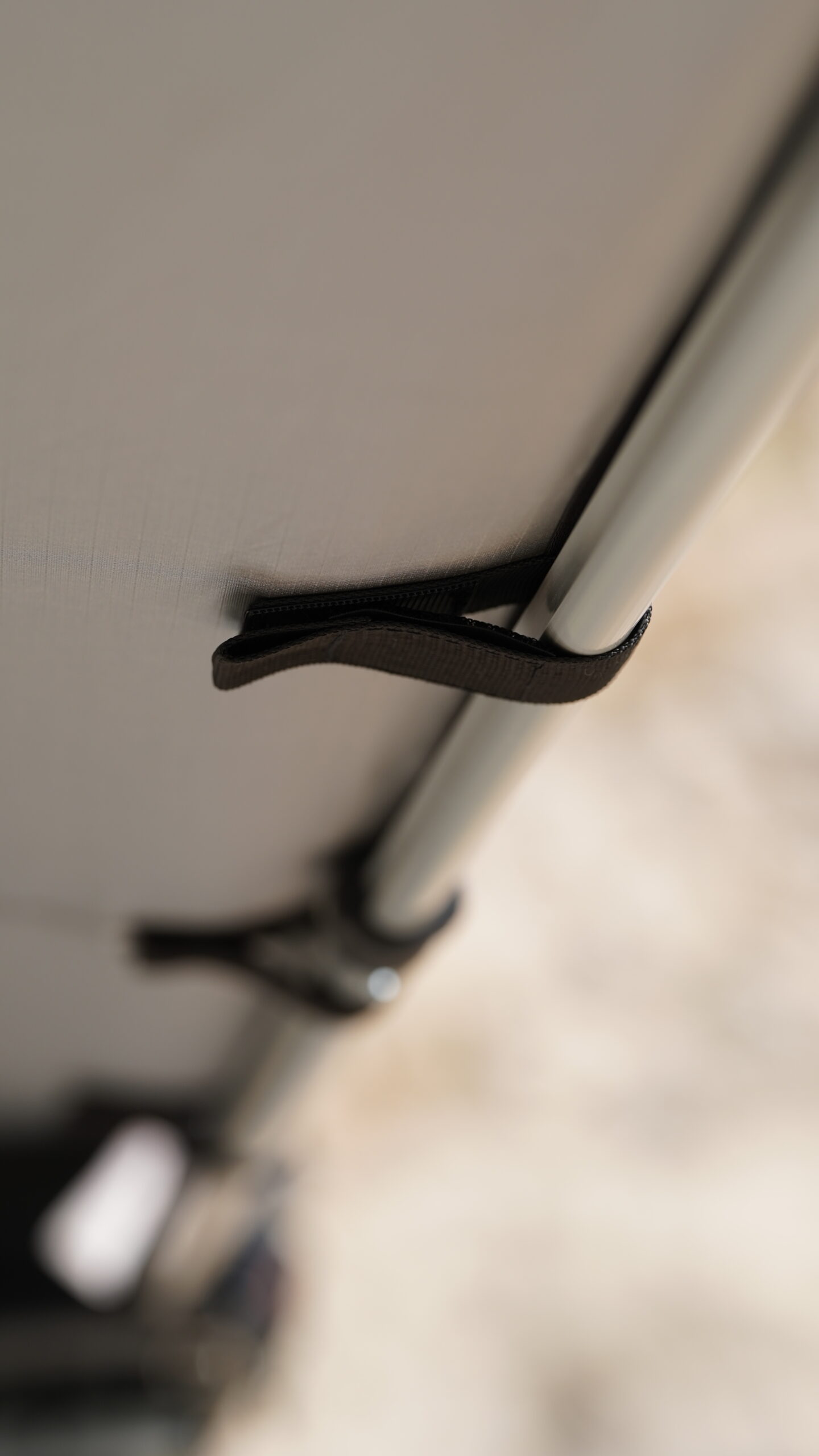 Ky model është projektuar për tu përdorur si një shtesë fleksibile në çdo fushëkampimi — mund të lidhet direkt me strukturën ose shinat e autos, dhe mund të vendoset lehtë falë palosjes kompakte dhe aksesorëve mbështetës si shtylla alumini dhe litarë fiksues.