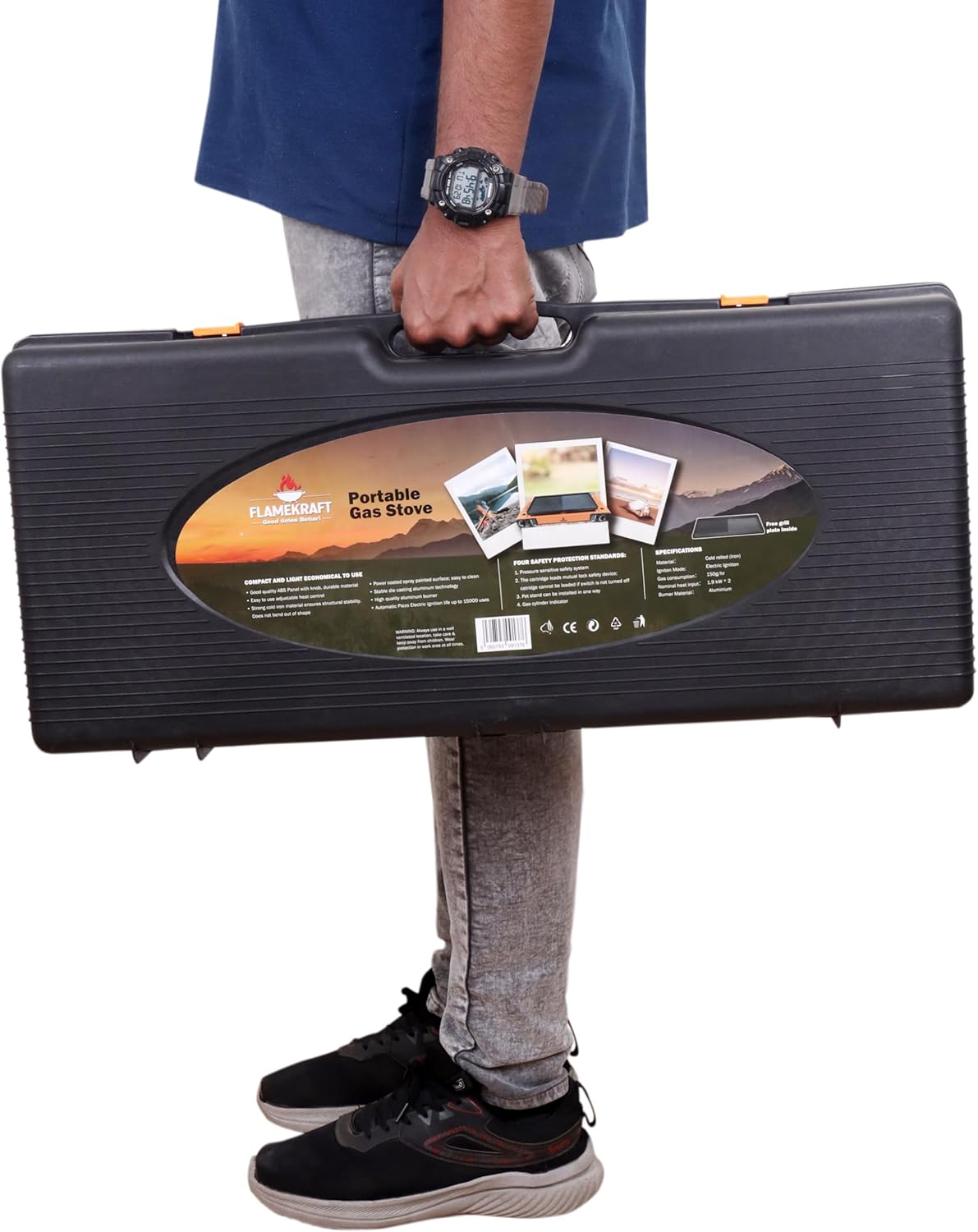 Për transport më të lehtë, soba vjen me një valixhe të fortë transporti, që e mbron pajisjen dhe e bën shumë praktike për udhëtime.